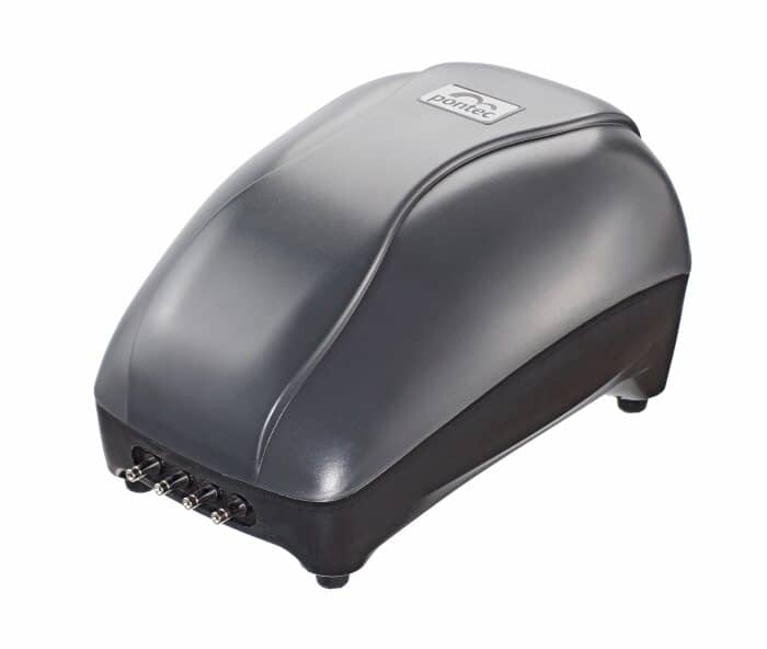 The PondoAir Set 900 air pump set with 900 l/h and only 12 watts provides additional aeration and a good climate in the pond. Thanks to IP44, the pump is protected against splash water. With its pleasantly quiet operation, the set is perfect for outdoor use. Included in delivery: 2 × 5 m air hose, 2 diffusers, 2 Y-distributors and a 1.5 m long cable. Your guarantee: 2 years!